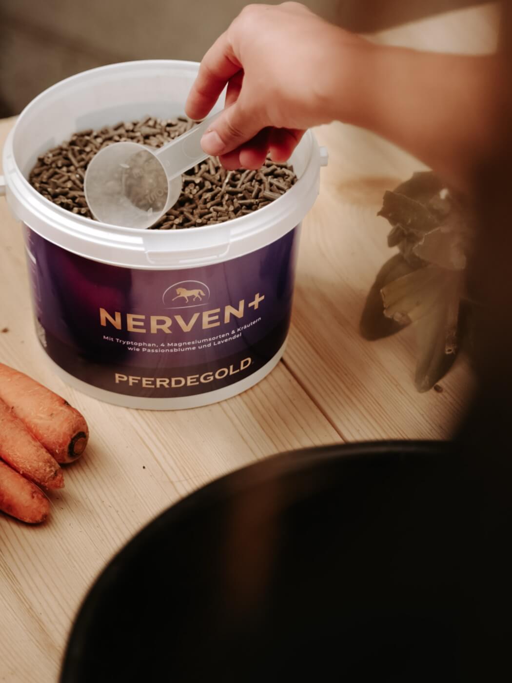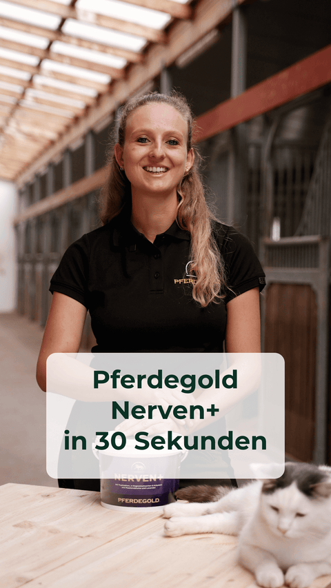 Pferdegold Nerven 2.0 ist ein Ergänzungsfutter mit wichtigen Mineralien und Vitaminen. Bei besonderen Verhaltensauffälligkeiten solltest du aber auf jeden Fall mit deiner Tierärztin oder deinem Tierarzt sprechen, ob eine Ergänzung sinnvoll ist.