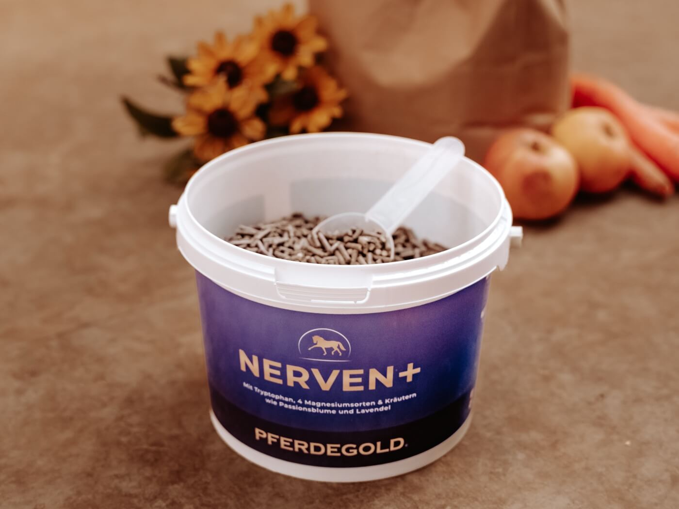 Wenn es darum geht, das Wohlbefinden und die Nervenstärke Deines Pferdes zu fördern, kann es sich lohnen, Pferdegold Nerven in Betracht zu ziehen. Denn Pferdegold Nerven bietet eine natürliche Unterstützung für Dein Pferd. Es kombiniert auf clevere Weise gleich vier verschiedene Magnesiumarten: Magnesiumoxid, Magnesiumcarbonat, Magnesiumfumarat und Magnesiumstearat. Außerdem enthält Pferdegold Nerven noch weitere handverlesene Zutaten. Jeder Inhaltsstoff wurde sorgfältig ausgewählt, um die Nerven Deines Lieblings zu unterstützen und die Konzentrationsfähigkeit auf eine natürliche Weise zu fördern.